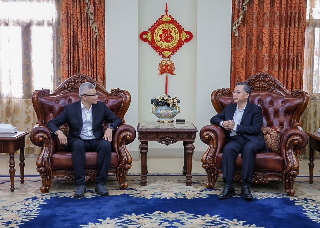 5月26日上午,王坤拜会了中国驻马里大使陈志宏。王坤向大使介绍了中国海外整体情况及在马里业务开展情况,并就马里安全形势及投资等方面进行了交流。陈志宏大使充分肯定了中国海外西非公司在服务国家外交大局中的积极作用,对突发事件中的高效处置表示认可,并委托王坤向相关中方员工转达慰问。陈志宏大使强调,中马合作前景广阔,希望中国海外继续深化合作,为中马友好作出更大贡献。