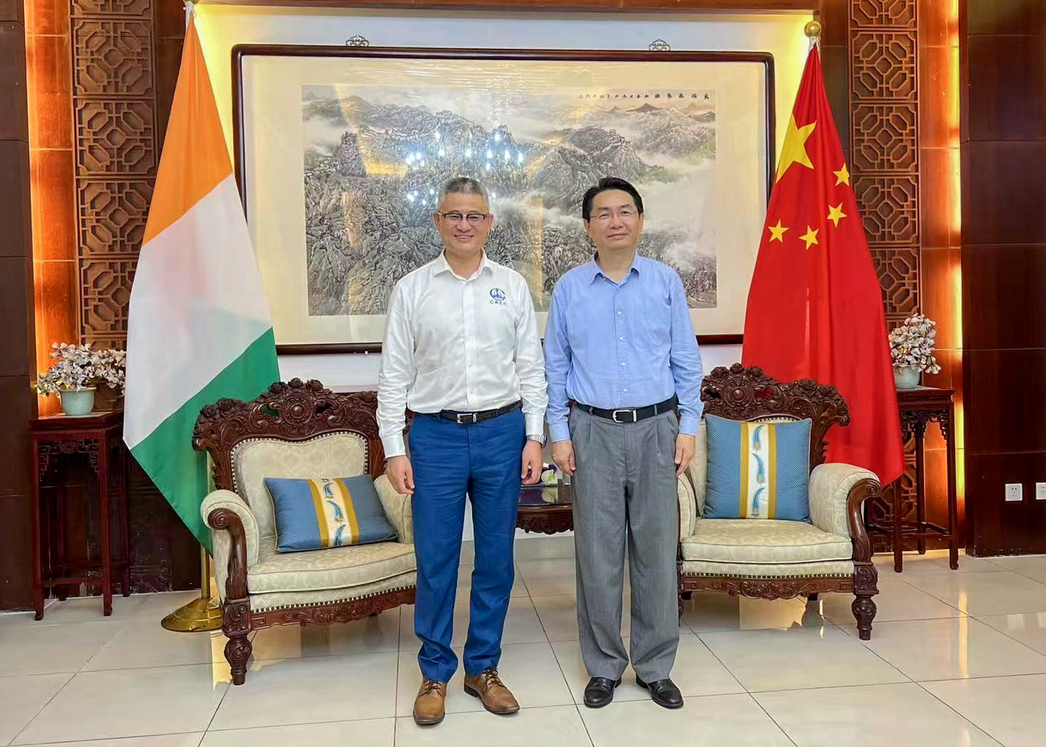 5月27日上午,王坤拜会了中国驻科特迪瓦大使吴杰。王坤向大使介绍了中国中铁海外优先发展以及一体两翼的战略部署,阐述了中国海外优势产业链与所在国发展需求的连接的发展理念。吴杰大使对王坤一行表示欢迎,从政治、安全、经济、双边关系等方面阐述了科特迪瓦国别情况。
