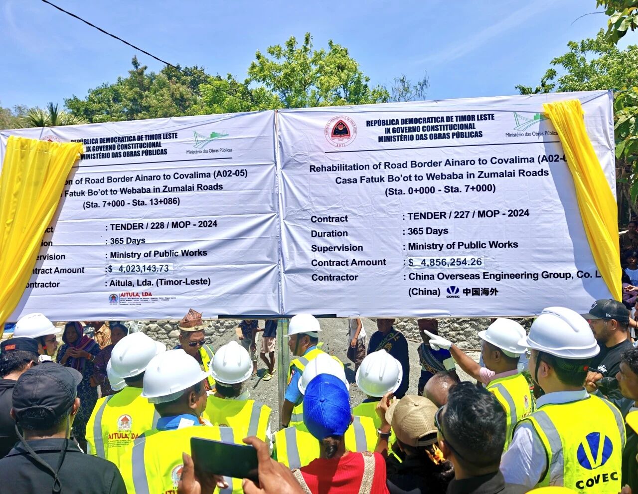 东帝汶公共工程部部长萨缪尔、民族解放战士事务部部长吉尔、基础设施部副部长胡里奥、国家行政部副部长雅辛托、地名与城市组织事务国务秘书热尔马诺、科瓦利马省省长米格尔、阿伊纳罗省省长玛努埃拉等政府官员,中国海外东帝汶分公司项目建设团队以及当地社区代表百余人共同出席了开工典礼奠基及合同签署仪式。