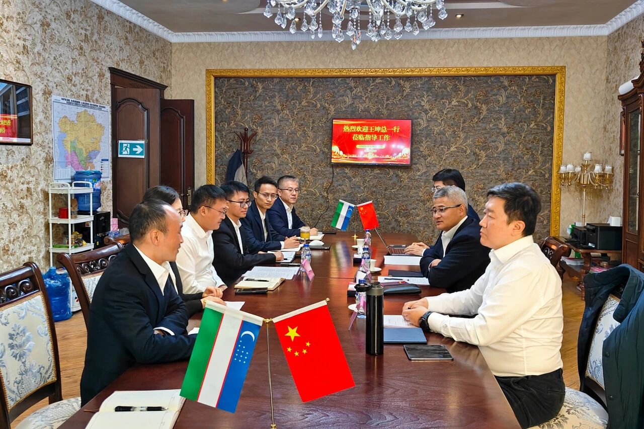 同日,王坤拜会了中国驻乌兹别克斯坦大使馆商务参赞孙岩。双方就市场开发、基础设施建设和安全稳健发展等事宜,进行了深入交流。